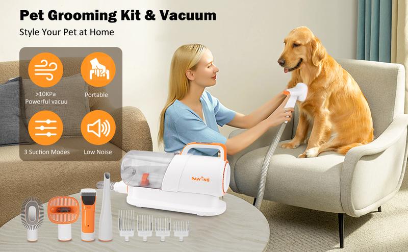 PAWING Pet Grooming Vacuum – 5-in-1 Dog & Cat Grooming Kit with Vacuum Brush for Shedding, Hair Removal & Clipping